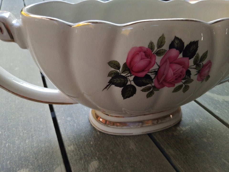 Decorative Floral Decorated 2 Handled Ceramic Vase With Flower Grate Insert 13"